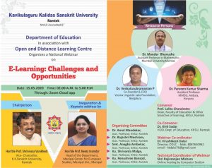 Description: Kavikulaguru Kalidas Sanskrit University(KKSU); Department of Education in association with Open and Distance learning(ODL) Centre had organized a National Webinar on E-Learning Challenges and opportunities. In this seminar Venkata subramanian gave a presentation on” E-learning – Does one size fit all?”. Demonstration of e-learning tools created by Vyoma Labs was done.